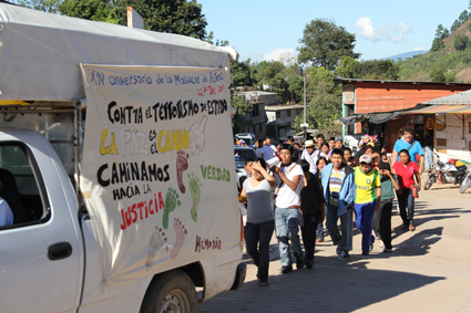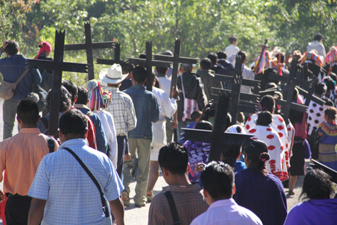 Caminata por la paz ha llegado a Yabteclum, Chenalho. En donde dormirán esta noche para mañana salir alrededor de las 5:00 de la mañana y posteriormente encontrarse con los de más integrates de la Sociedad Civil Las Abejas de Acteal y demás personas solidarias y simpatizantes a la lucha pacífica de esta organización.