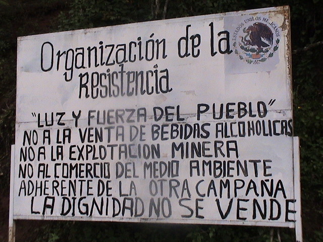 6.- A las grandes empresas mineras y talamontes de Canadá, les advertimos que no dejaremos que sigan saqueando ni robando nuestros recursos naturales, destruyendo el medio ambiente, no les basta mirar el destrozo que dejó el Huracán “Stan”. Como tampoco a la empresa Coca Cola dejaremos que se apodere de la montaña del Rosarito y del Predio Las Chicharras del ejido Vega del Rosario, donde hay molibdeno y agua limpia.