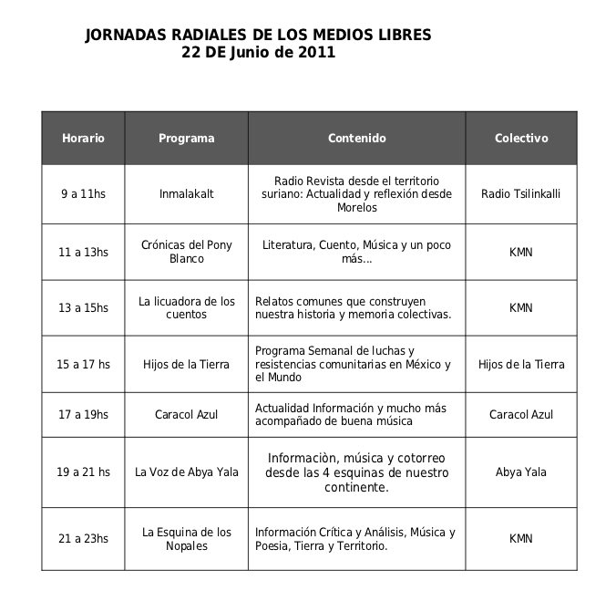 Las Jornadas Radiales son una construcción colectiva de todxs los que se encuentran, comparten, participan y construyen hermanados con la palabra y la voz de su contexto. Buscamos ejercer nuestro derecho a disentir, construir, criticar y divertirnos, asumiendo la responsabilidad de lo que significa compartir información. Así mismo queremos invitar a que la misma sociedad genere sus propios mecanismos de comunicación libre y reflexiva.