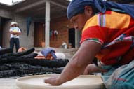 “(…) la alfarería es trabajo de mujeres y, por eso, empecé desde chiquita. A los doce años mis hermanas y yo ya sabíamos todo. Pero antes no era como es hoy. Ahora mandamos a San Cristóbal nuestras ollas y cántaros con cualquier camión. En mi niñez todo se transportaba a caballo. Un caballo cargaba doce de estos cántaros grandes. Salíamos temprano de aquí y andábamos todo el día. Alrededor de las cinco de la tarde entregábamos nuestro trabajo allá en San Cristóbal y luego regresábamos ese mismo día. De noche dormíamos a medio camino.