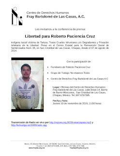 Les invitamos a la conferencia de prensa: Indígena tsotsil víctima de Tortura, Tratos Crueles Inhumanos y/o Degradantes y Privación Arbitraria de la Libertad. Preso en...